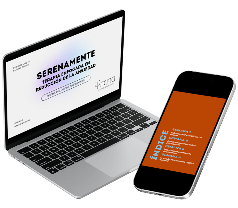 Serenamente es un tratamiento terapéutico de 4 semanas para reducir los niveles de ansiedad, reconectar contigo y cultivar bienestar emocional. A lo largo del proceso contarás con acompañamiento profesional en sesiones semanales de 45 minutos, un manual en PDF con recursos amorosamente diseñados, actividades semanales para integrar a tu vida y herramientas prácticas para regular tu sistema nervioso. Es un espacio íntimo y seguro para transformar tu ansiedad en claridad, presencia y equilibrio.