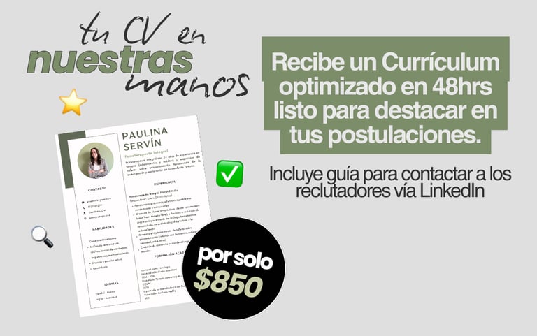Impulsa tu búsqueda laboral con un CV optimizado y vacantes alineadas a tu perfil. Aumenta tu visibilidad en plataformas de empleo.